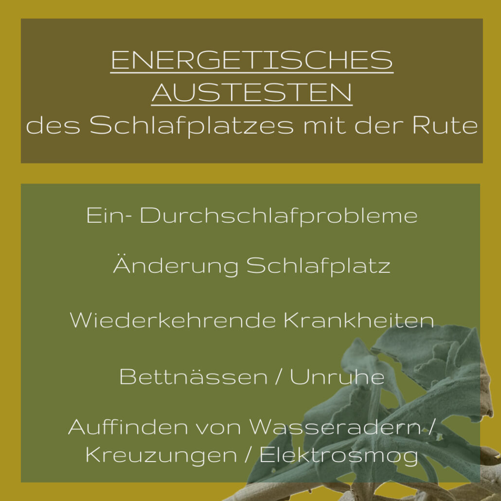 Mittels der Einhandrute teste ich den Schlafplatz oder Arbeitsplatz speziell auf deine Bedürfnisse aus und bespreche mit dir, welche Maßnahmen zur Entstörung beitragen können.